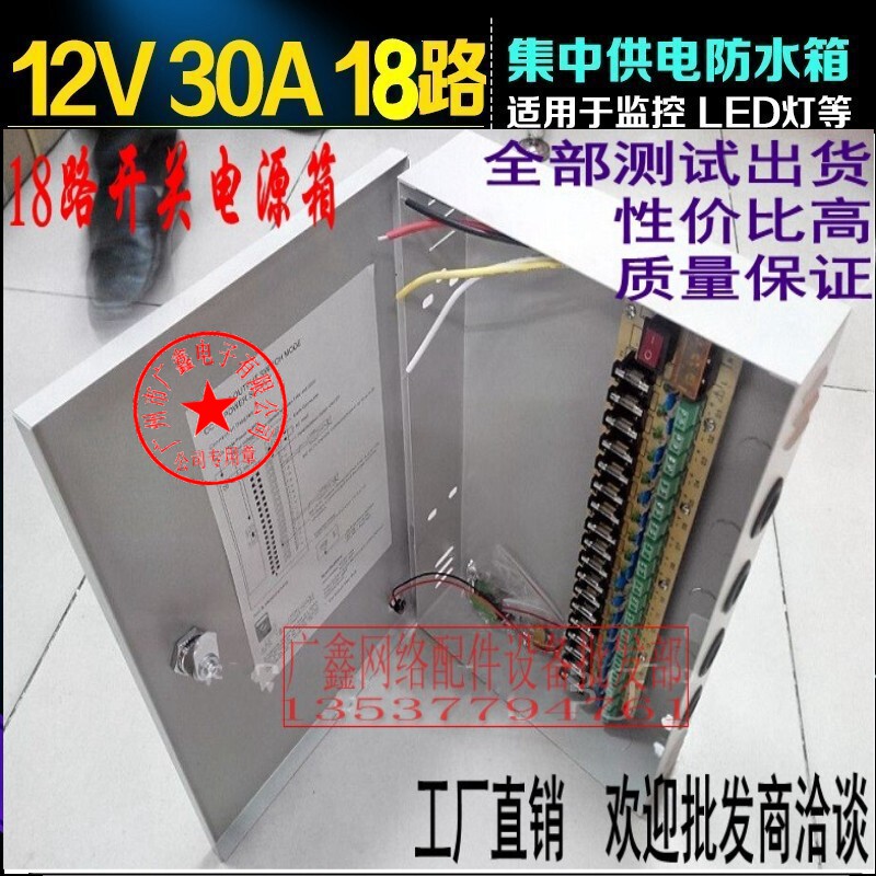 12V2A switching power supply box 18-way wiring board camera power supply security centralized power supply outdoor rainproof