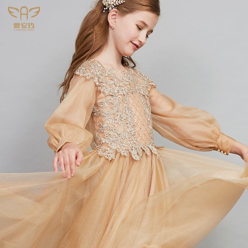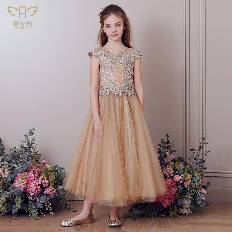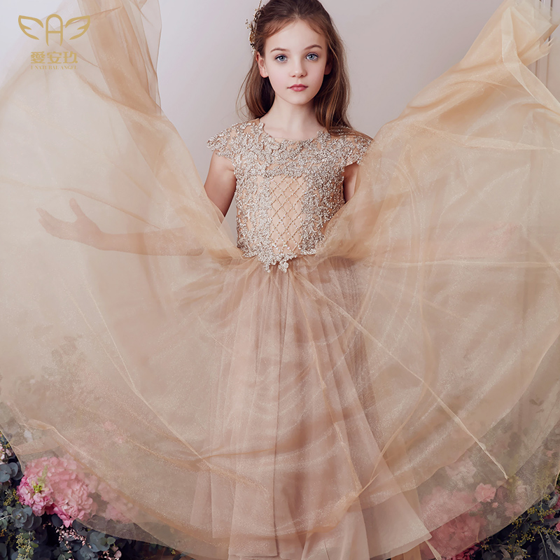 Love Anjiu Flowers Princess Dresses Girl's Dress Girl Birthday High-end Children Dress Fluffy Yarn Noble Piano For Women's Evening