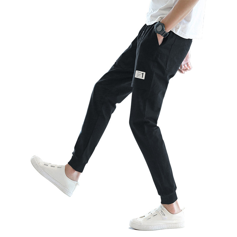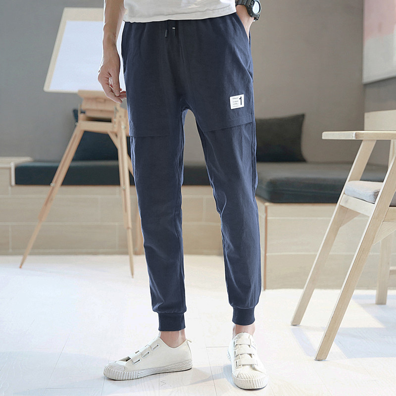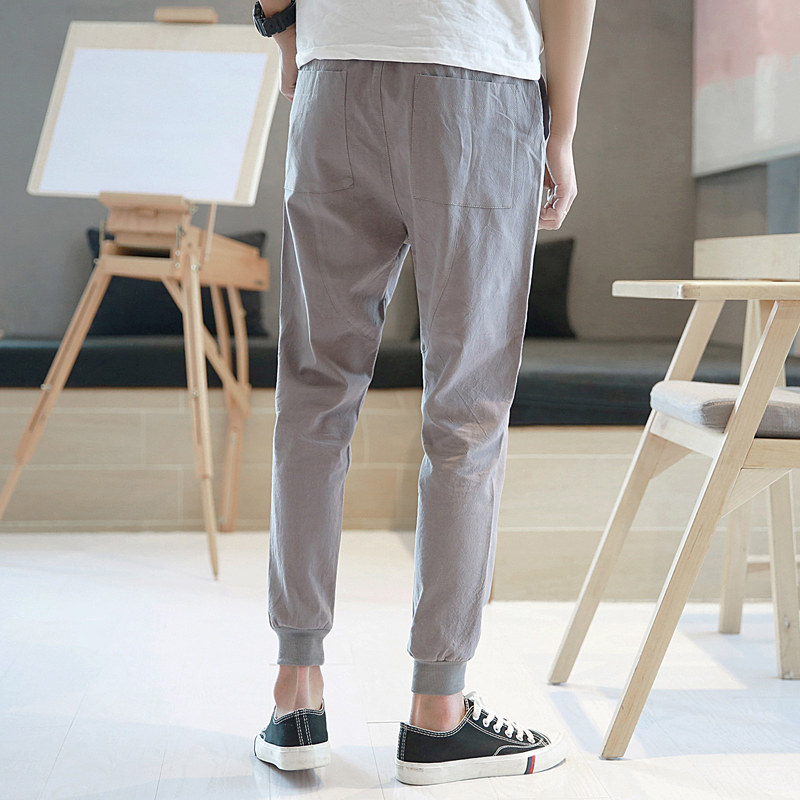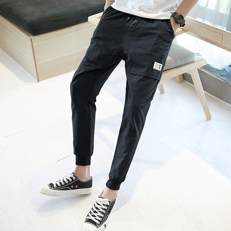 Summer men's casual pants drawstring pants Korean version of the trend Harem pants nine-point pants car label small feet sweatpants pants men