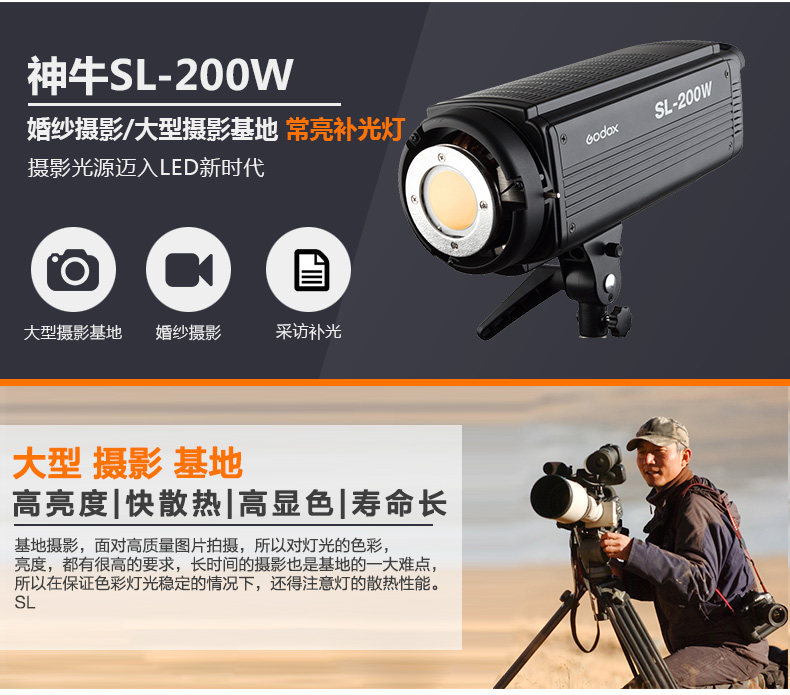 God Bull SL200W 2nd generation LED Changliang Solar lamp Children's photo gallery Wedding Ceremony recording filming Tonic Photostudio Equipment