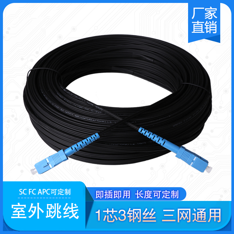 Outdoor 1 Core 3 Steel Wire Pitline Fiber Single Mode Transceiver Light Cat Extension Cord SC FCA PC Scalp Line Jumper