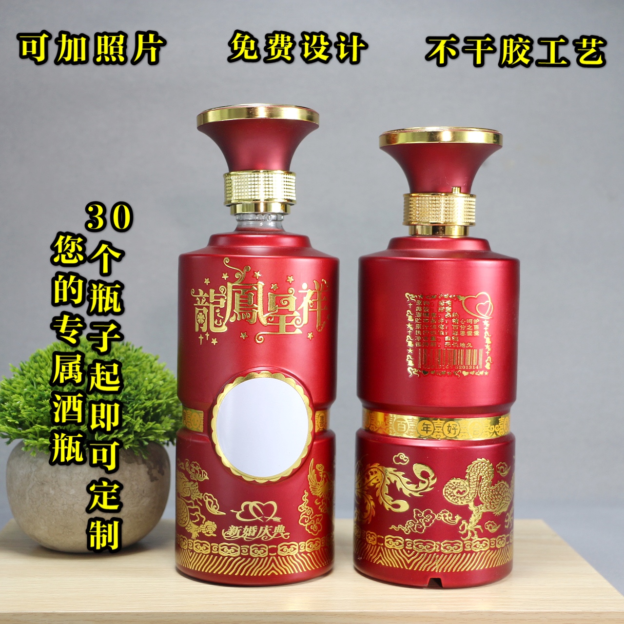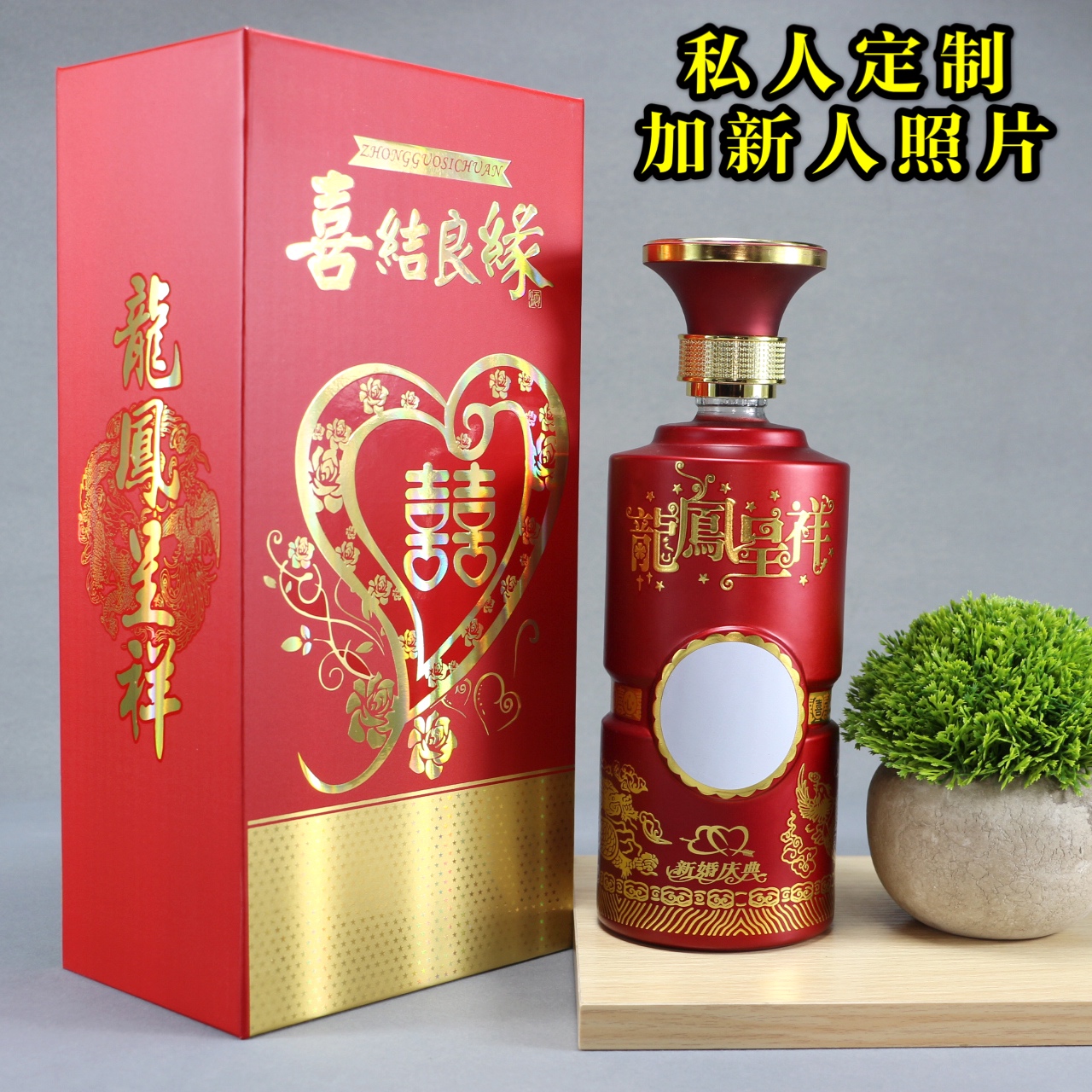 Wedding wine empty wine bottle high-grade glass white wine bottle red wedding banquet wine box full set with photos personal tailor