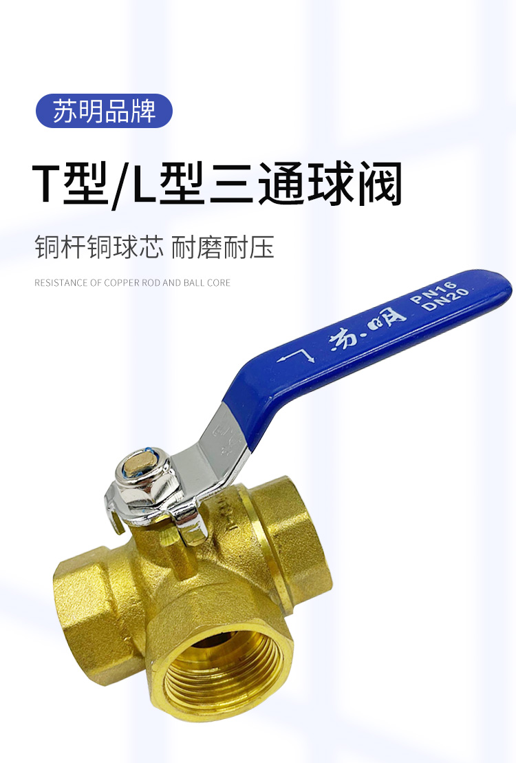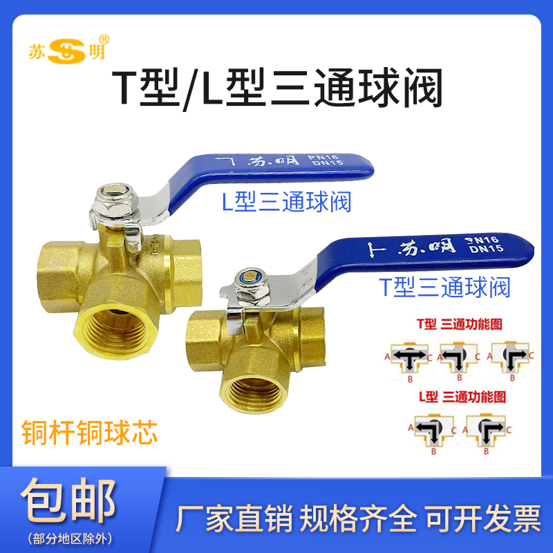 T-type L-type thickened brass three-way ball valve water valve air valve switch 2 minutes 4 minutes 1 inch three-way copper ball valve DN15