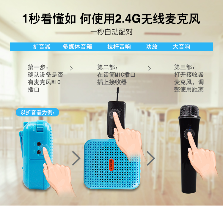 2 4G wireless microphone small bee loudspeaker teaching shouting bluetooth headset stage performance handheld microphone