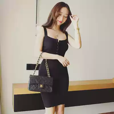 Retro knitted sling dress female summer students college style Korean Slim Skinny Joker dress base skirt
