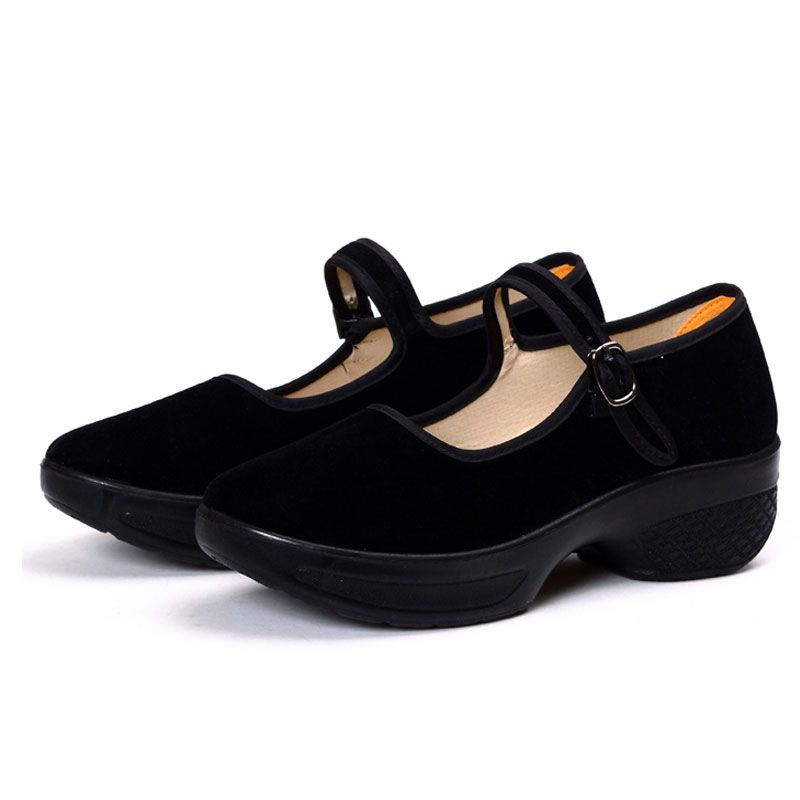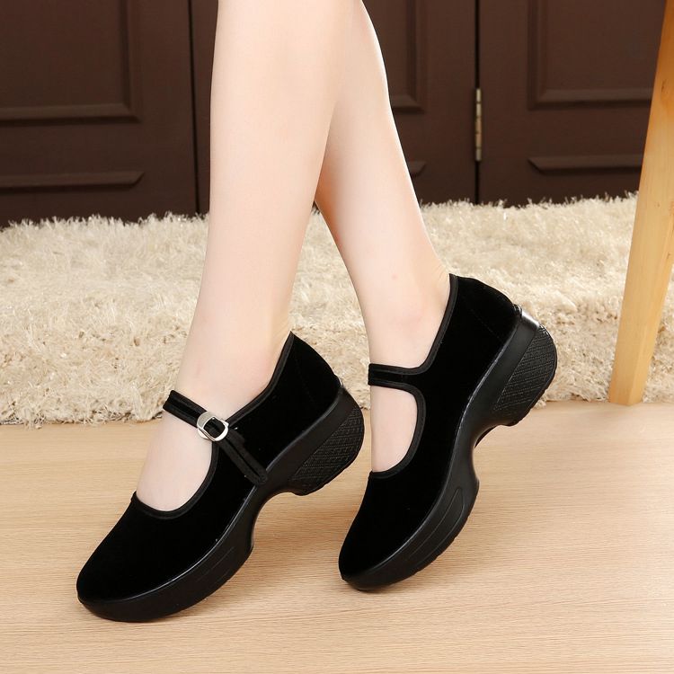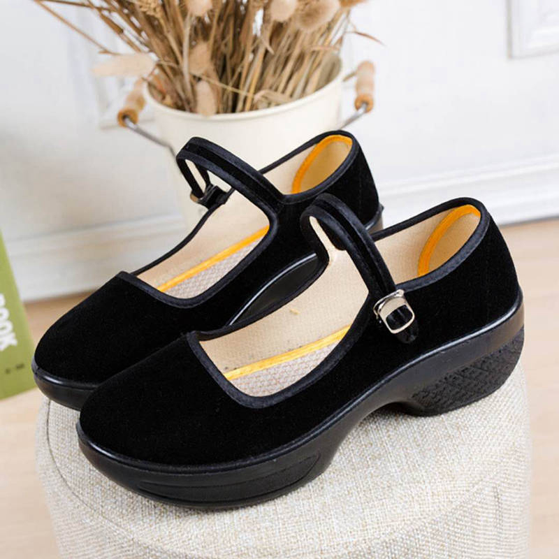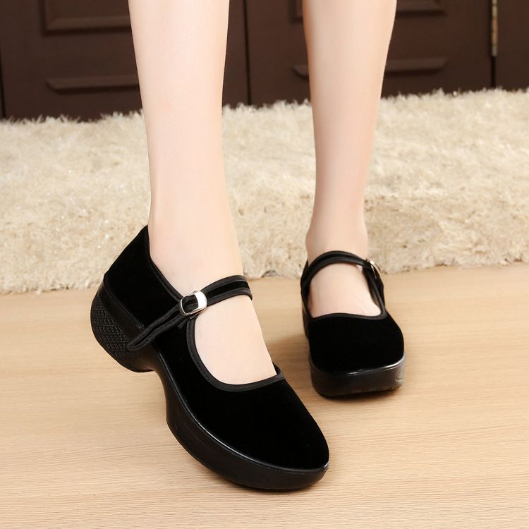 Old Beijing cloth shoes women's medium-heel work shoes black hotel thick-soled sponge cake shallow mouth non-slip soft-soled comfortable women's single shoes