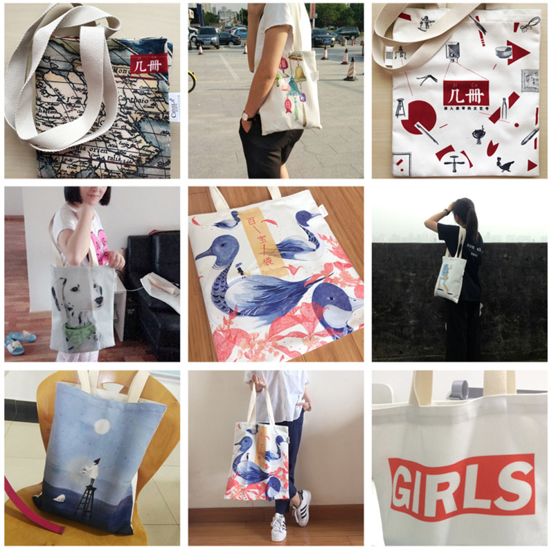 Japanese magazine appendix package Japanese literary graffiti fresh illustration environmental protection canvas bag shoulder hand carry horizontal version AD