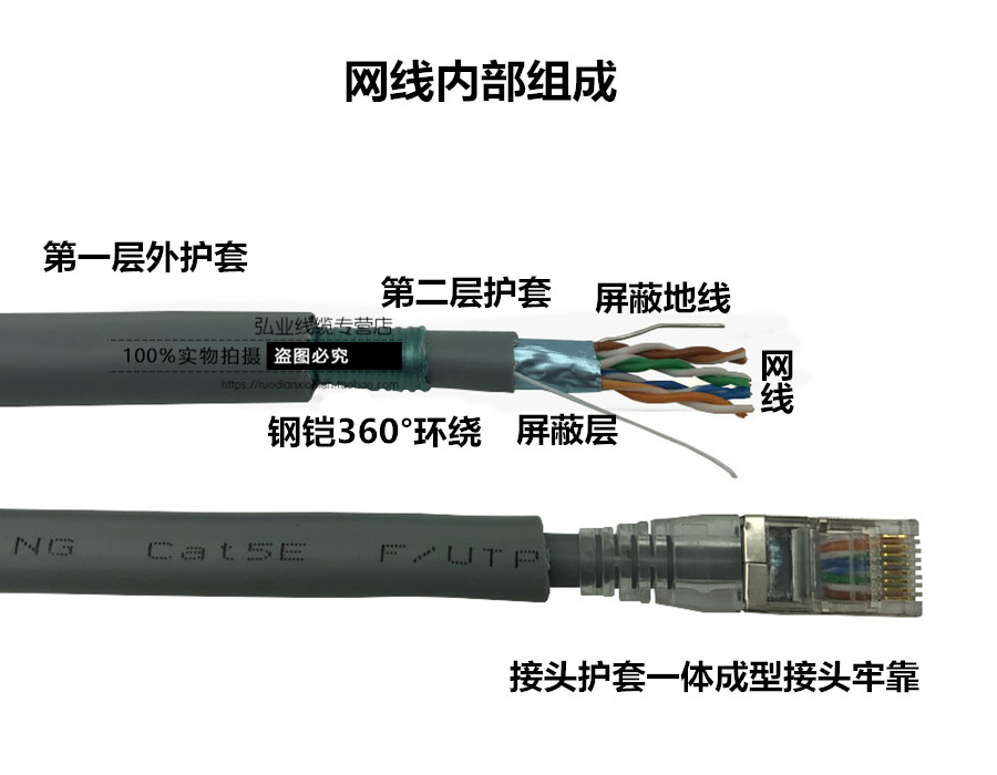 Outdoor anti-rat bite super five oxygen-free copper armored network cable Household high-speed broadband twisted pair jumper with shielding