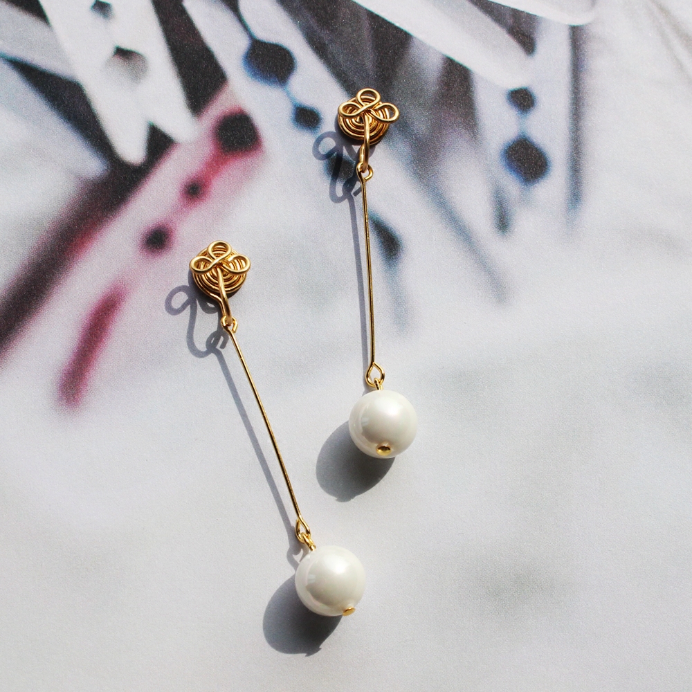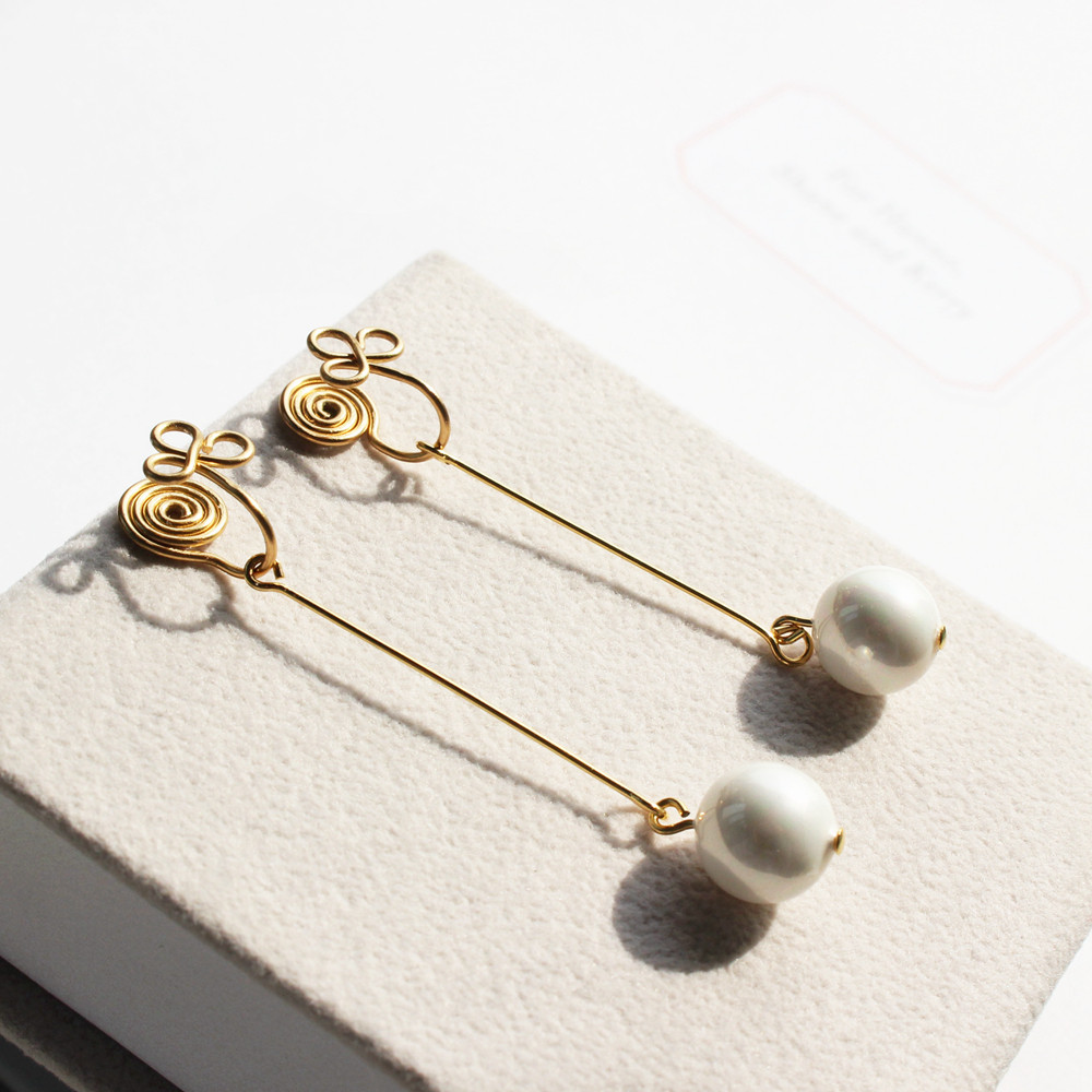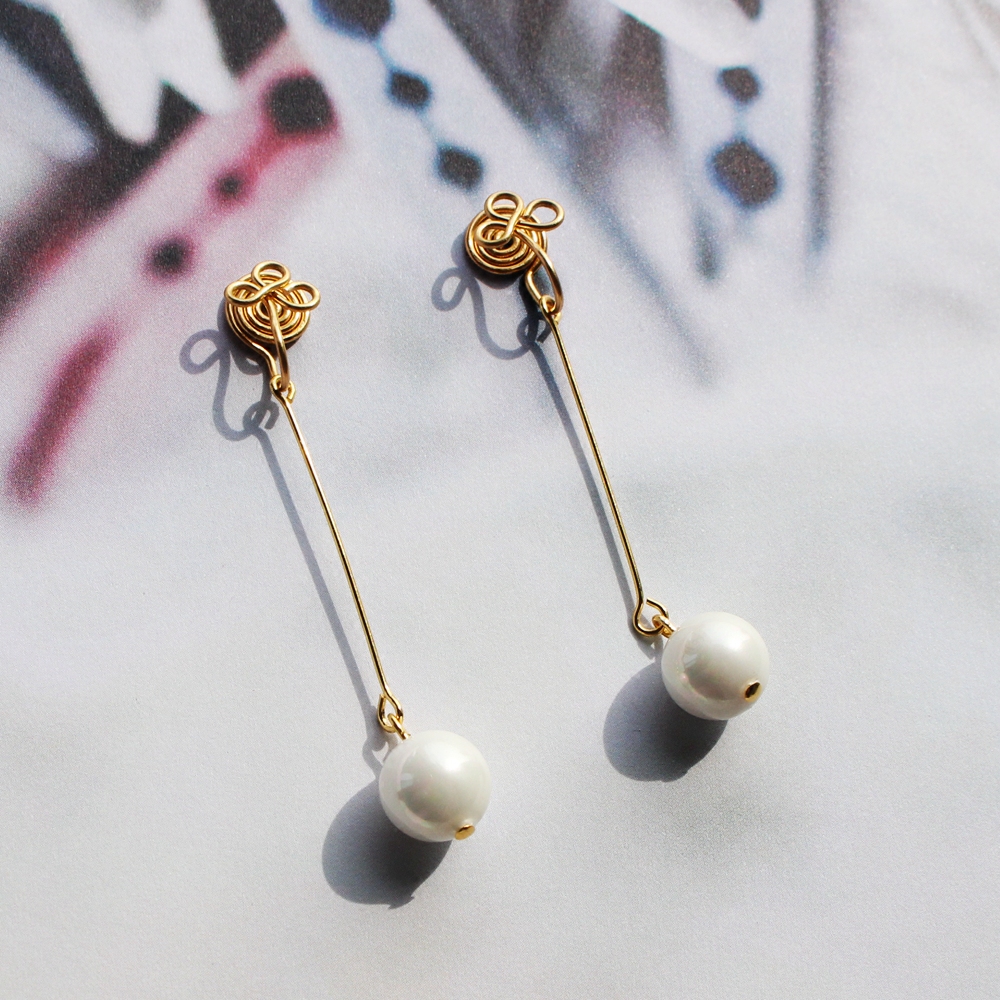 Handmade original custom no ear holes no pain mosquito coil ear clip Invisible pearl long version beaded ear clip ear ornaments earrings