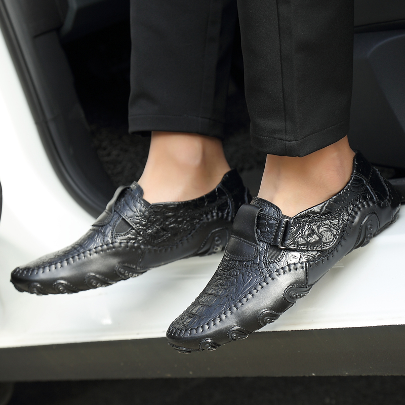 Spring leather breathable men's casual leather shoes Korean version of the youth beanie shoes lazy single shoes soft bottom driving small leather shoes