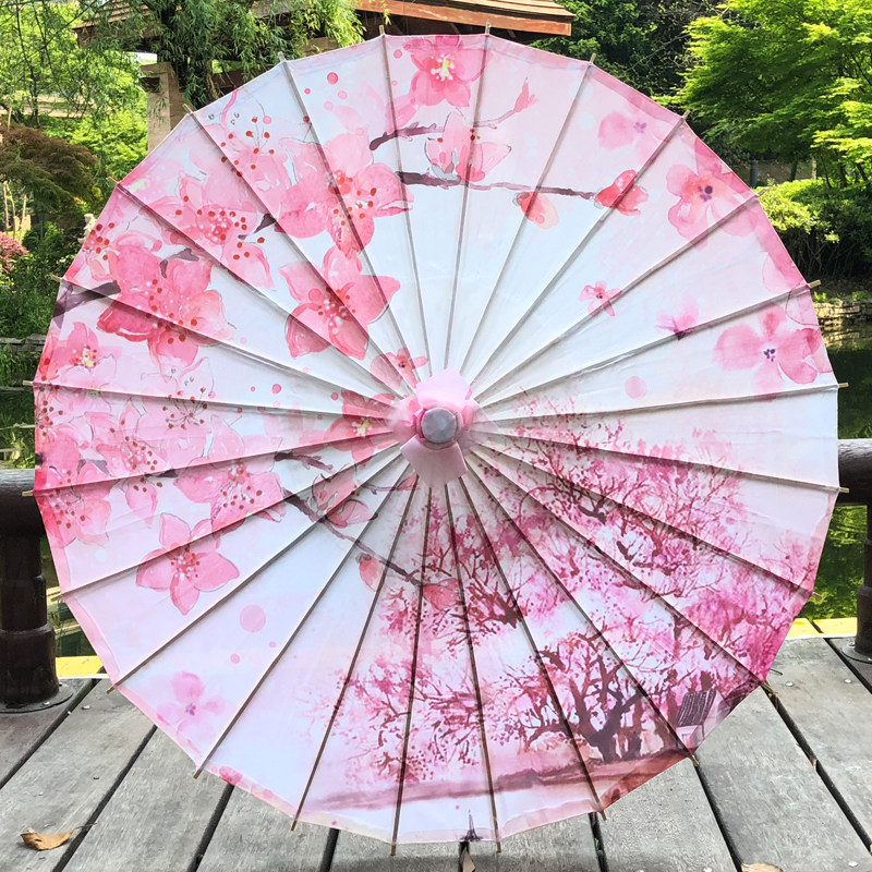 Three Mando jasmine open silk umbrella Blue and white porcelain dance umbrella Craft umbrella Performance props decorative umbrella Shili peach blossom