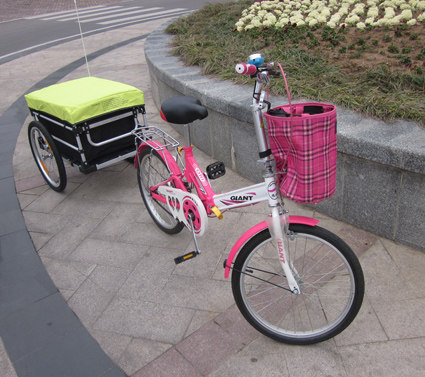 Green hand-pulled bike bike trailer