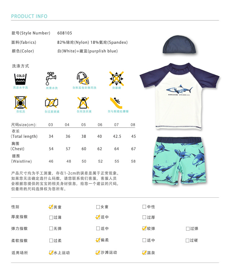 ins New 3-6 Year Old Boys Split Three-Piece Set Kids Quick-Dry Swimsuit Set Cartoon Shark Baby Swimsuit