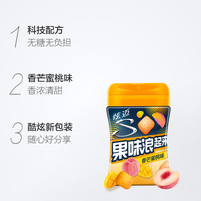 Xuanmai fruity Lang Xiang mango peach flavor 37 8g sugar-free xylitol chewing gum fruit fresh refreshing snack list