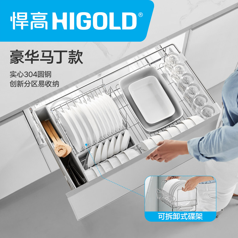 HIGOLD kitchen pull basket double drawer bowl rack Condiment 304 stainless steel integral cabinet built-in bowl basket