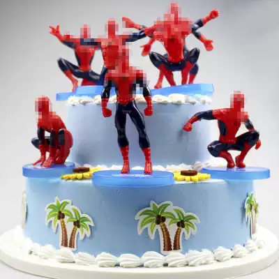 Solid Zhizhu Man 7-piece plastic light Zhizhu 7-piece Q version Zhizhu Man Four-piece Set (about 6CM High) double-layer Spider-Man Set Wire Zhizhu Man Flags Zhizhu Splice (1 pack of 24 pieces)