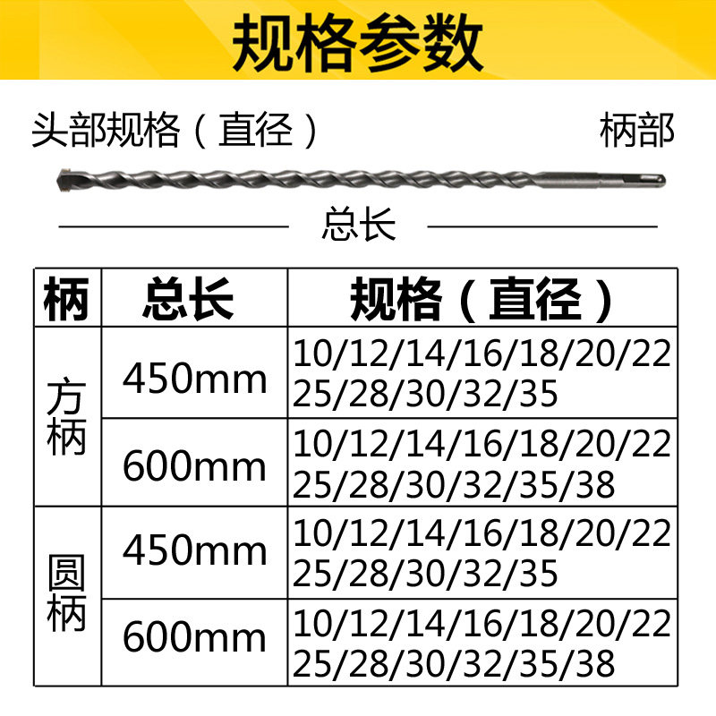 Lengthened electric hammer drill bit Percussion Drill drill Cement wearing wall round handle Two pits Two-groove square handle Four pit 450600m m