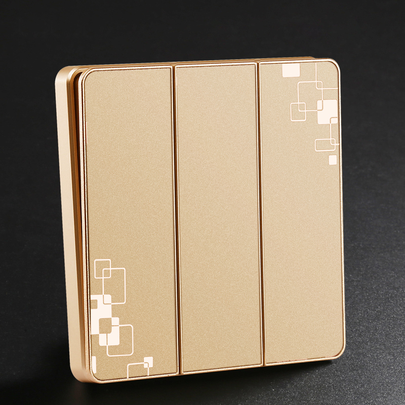 Wall 86 three - open switch socket panel Champagne gold switch socket panel M3 three - open monolithic control