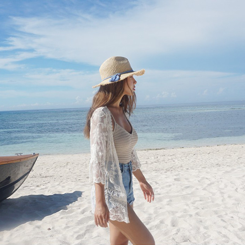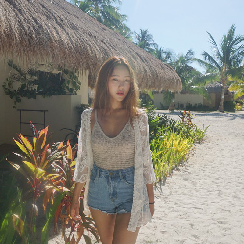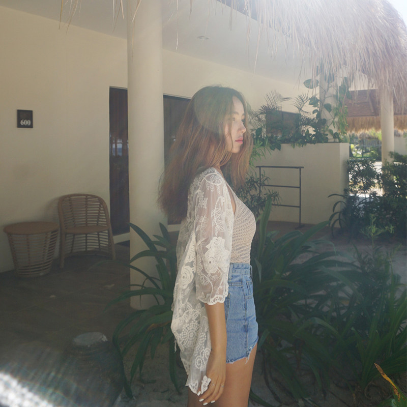 South Korea's new white holiday seaside bikini beach jacket swimsuit hood sexy hollowed-out sunscreen jacket woman