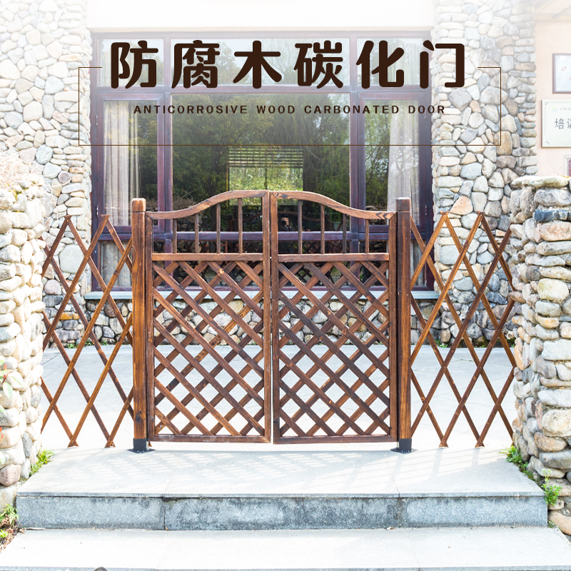 Outdoor climbing rattan frame anticorrosive wood garden fence wood fence courtyard grid fence gate garden gate carbonized wood fence