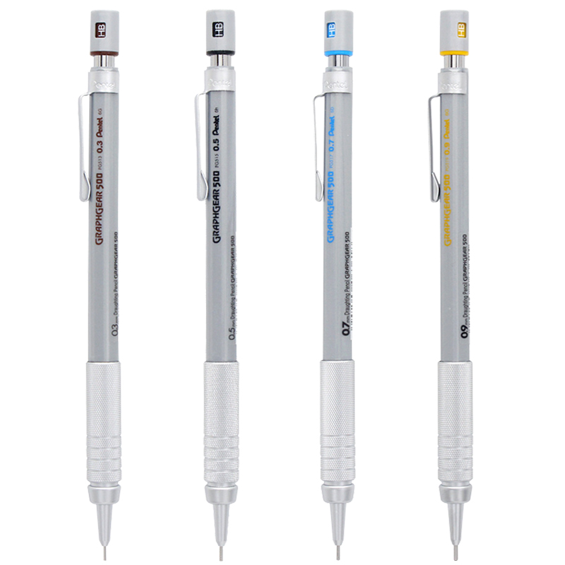 Japan PENTEL PIE PG515 Drawing automatic pencil 0 5 3 0 7 0 9 0 Low center of gravity metal anti-slip handshake student with fine art comic book professional design sketch activity