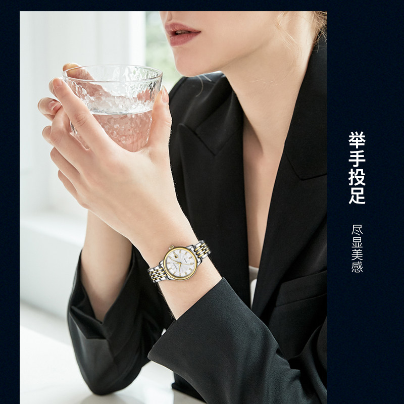 (special case with the same gold watch) Rossini watches Male lovers fine steel men's meter women's meter quartz watches 7715