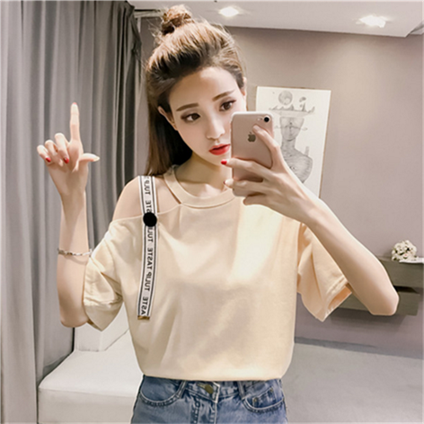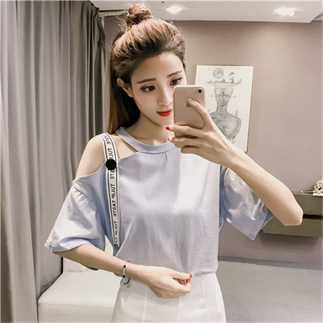 New Korean version big size fat MM short sleeve T - shirt cross-dressing pseudo women's students loose shoulder centrifuge jacket