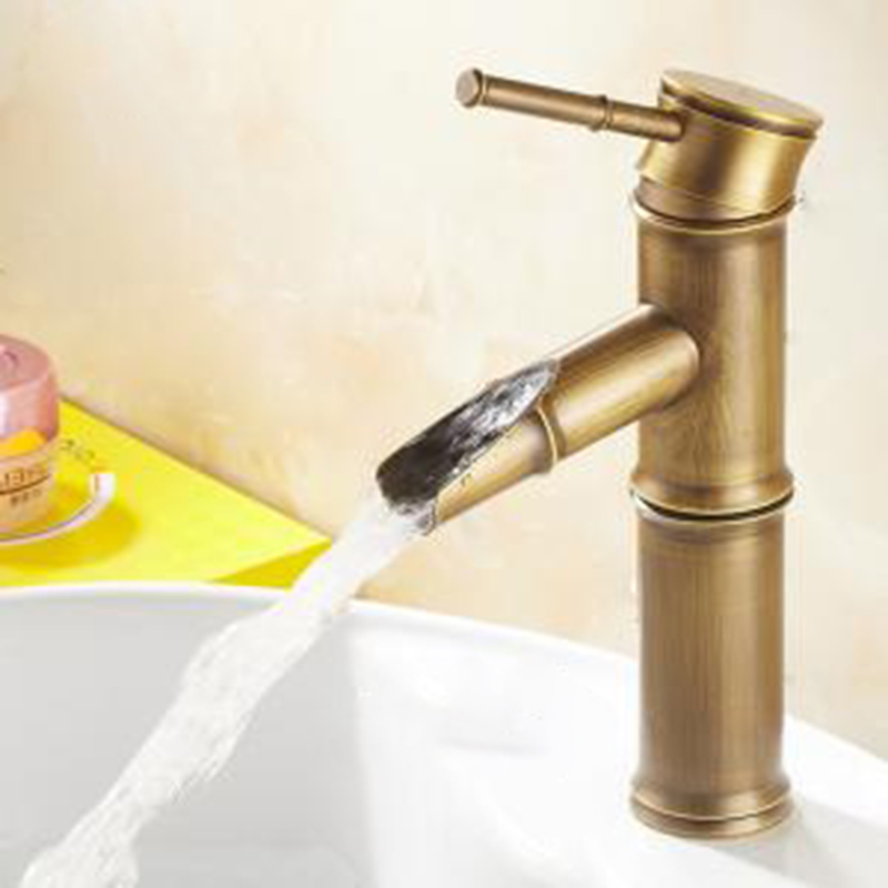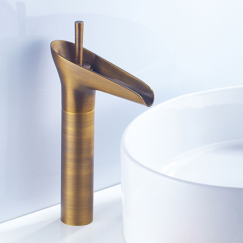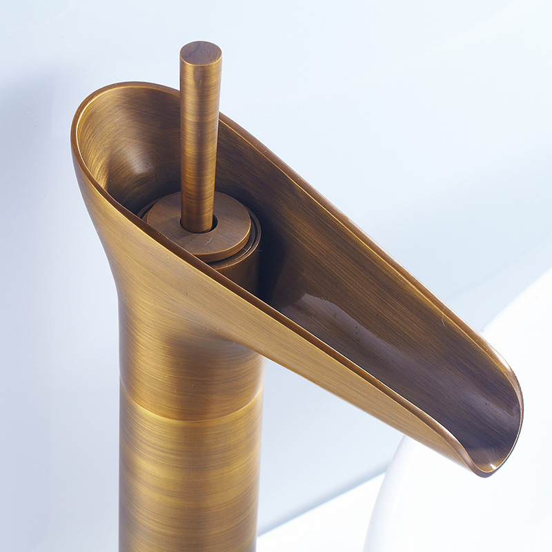 All copper European antique faucet Retro slub single hole basin faucet Art basin Table basin Hot and cold faucet