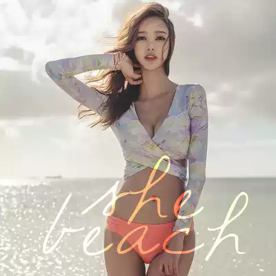 Korean swimsuit women's two-piece skirt small chest steel support gathered long-sleeved sunshade bikini three-piece new