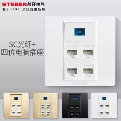 Type 86 wall concealed four-port Gigabit network information panel SC fiber four-digit six-type network cable computer socket