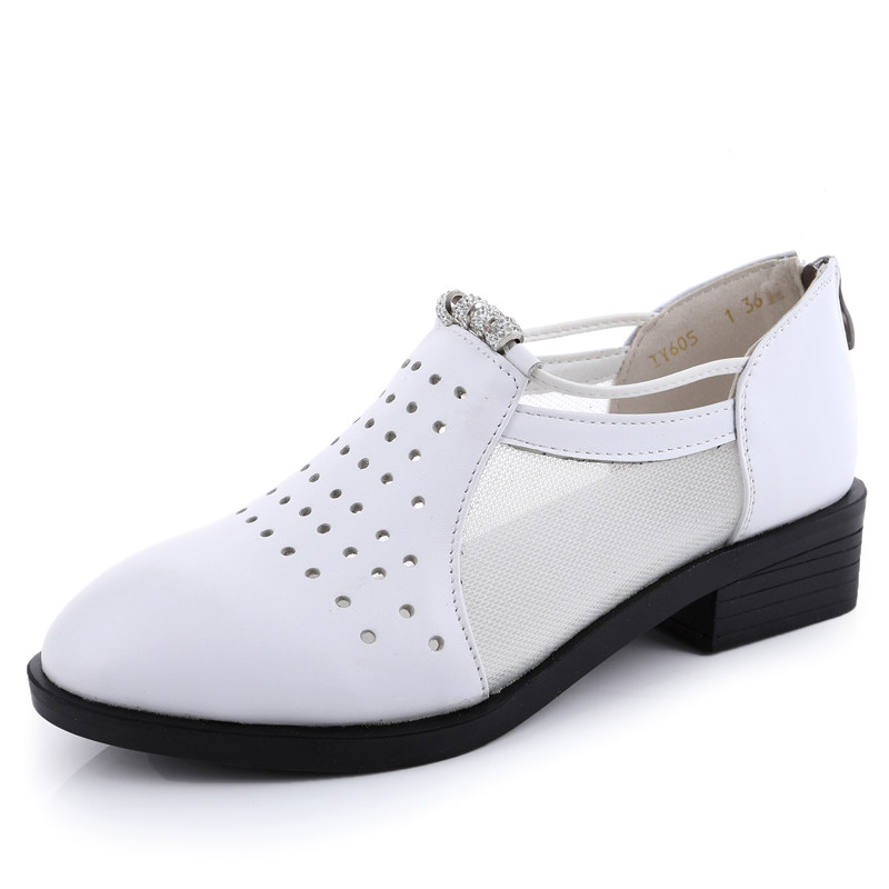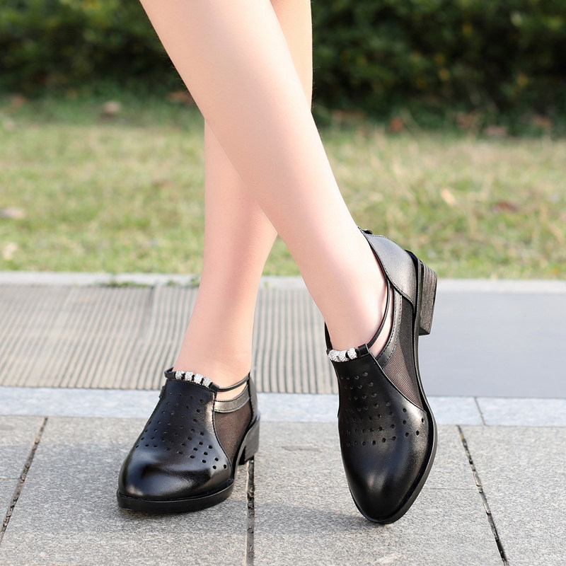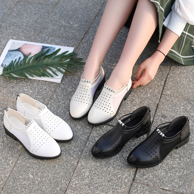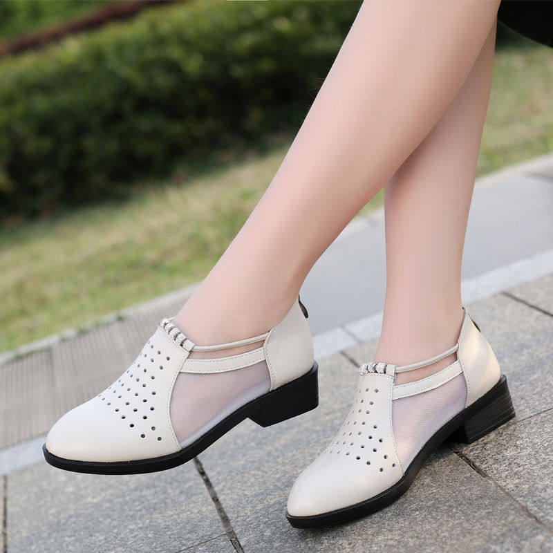 2022 Summer new genuine leather flat bottom Baotou sandal flat heel hollowed-out mesh yarn women shoes Soft bottom comfortable and breathable single shoes