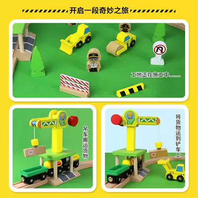 EDWONE70P Construction site wooden track toy train children's assembly toy