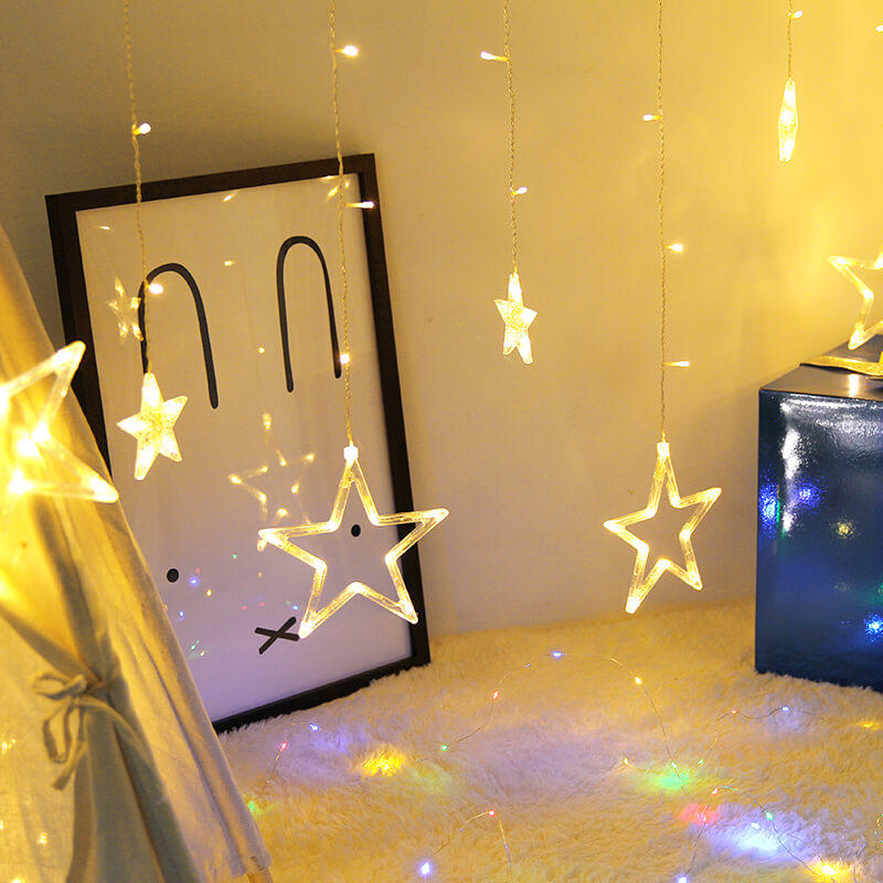 Big love hanging lamp 3m x 3m curtain lamp Big love hanging lamp with clip 2 5m five-pointed star warm white lamp pendant 2 5m five-pointed star powder lamp pendant 2 5m five-pointed star colorful lamp pendant