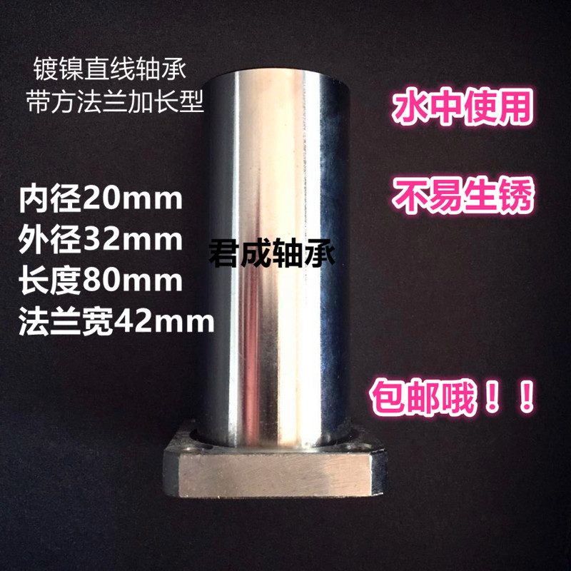 Nickel-plated linear bearing LM20LUU inner diameter 20mm extended round flange method flange waterproof and anti-rust 20 optical axis