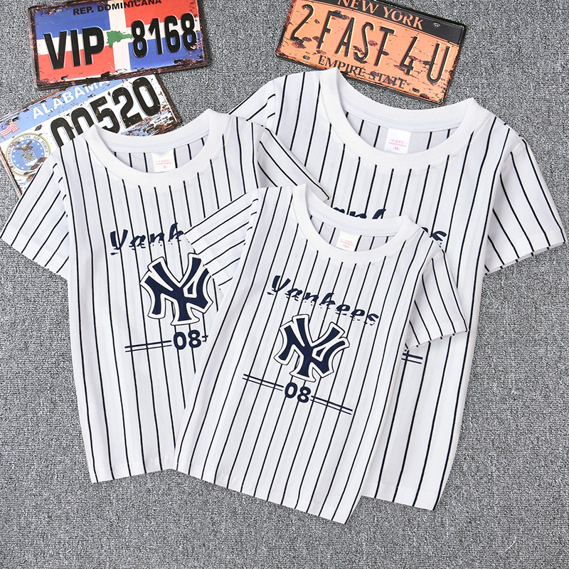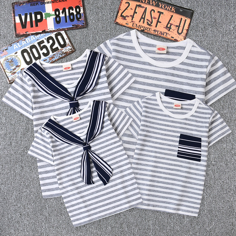 Brothers both pro-sub-loaded with summer clothing New striped pure cotton family of three short sleeves T-shirt mother-daughter dress for the whole family