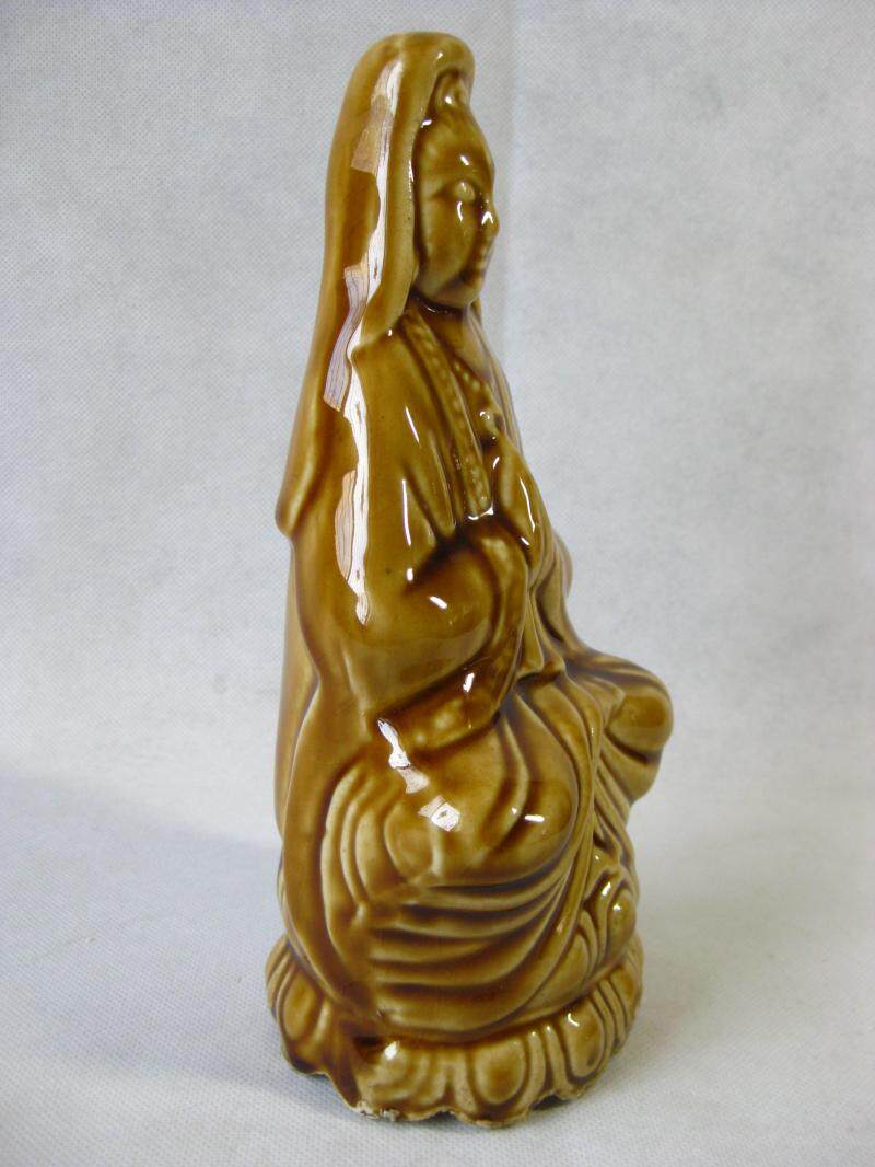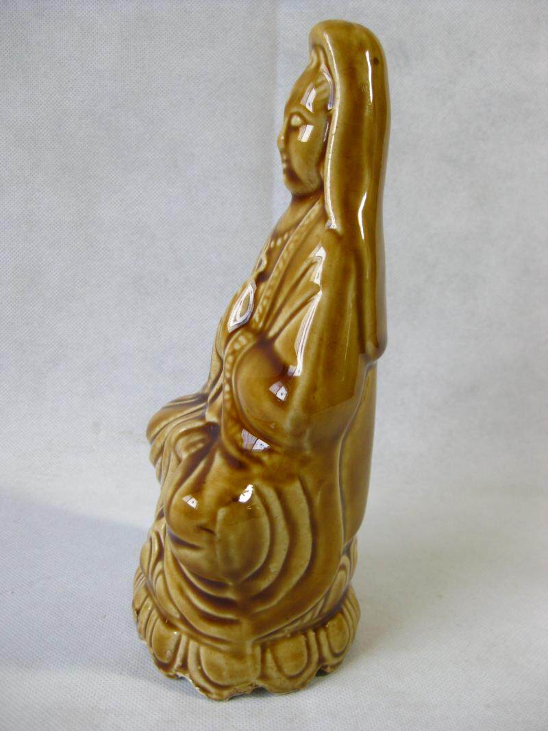 90's old yu county jun porcelain second factory yellow glaze color porcelain Guanyin Buddha statue height 20.5cm display device