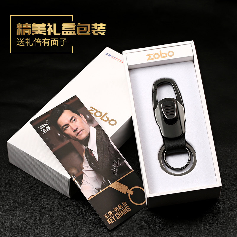 ZOBO car key pendant men's waist hanging simple keychain metal personality ring horseshoe buckle custom gift box