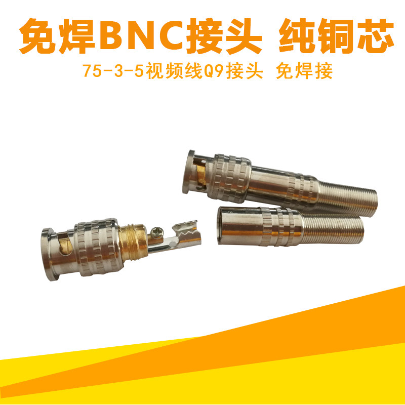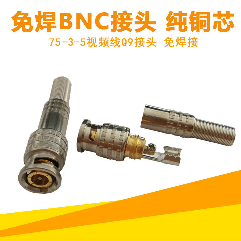 Welding-free BNC male connector pure copper core Q9 adapter analogue surveillance camera 75-3-5 transmission line bnc plug