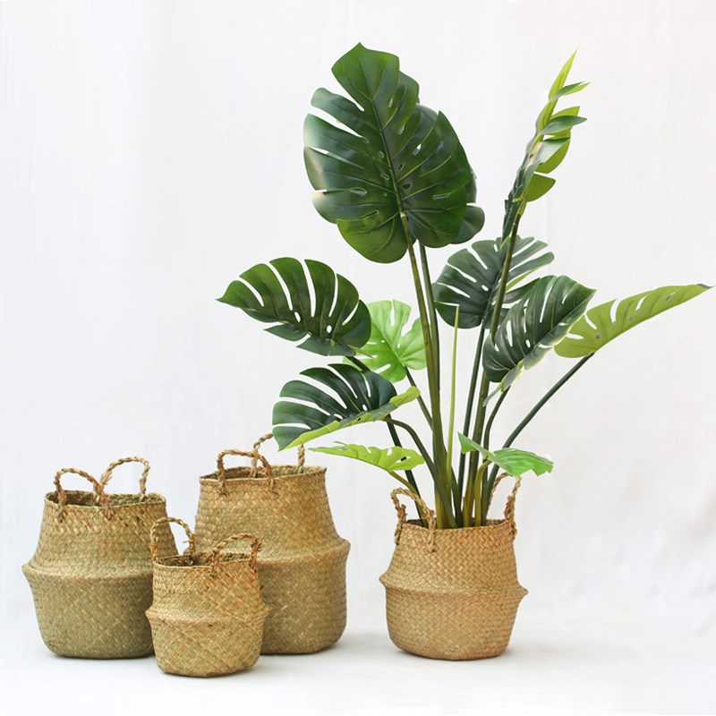 Emulated plant containing basket North European wind artisanal sea grass woven basket Natural colour Home Decorative Flower Basket can be folded