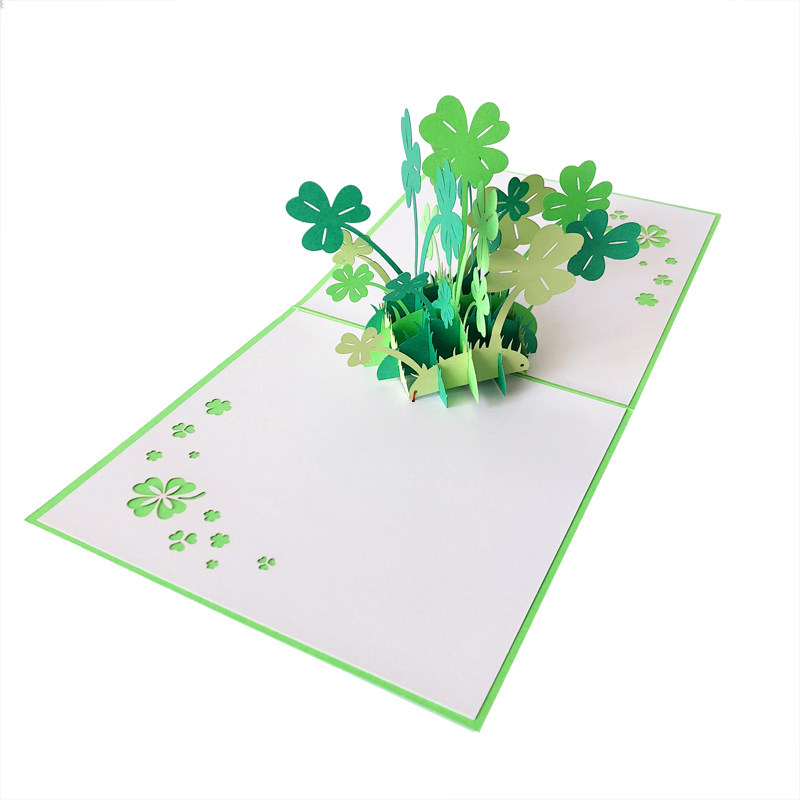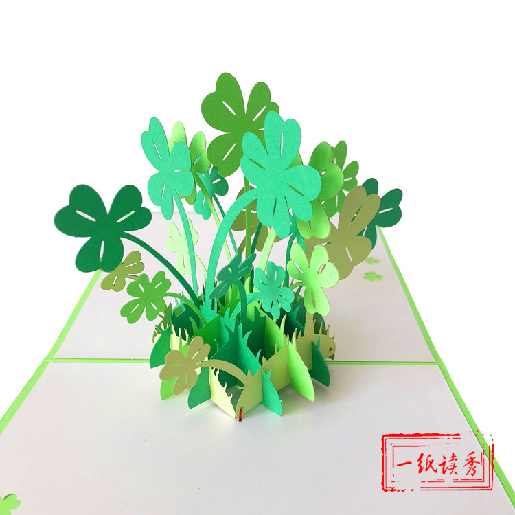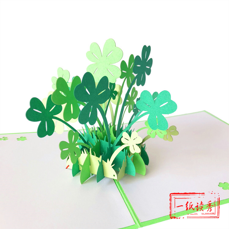 A paper reading show lucky four - leaf stereo card creative 3D paper carving birthday gift diy gratitude teacher's holiday card