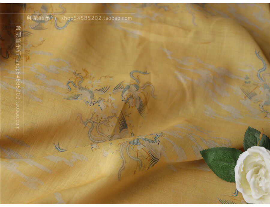 Give back 30% off the order fabric pure hemp digital printing auspicious cloud crane dress robe fabric