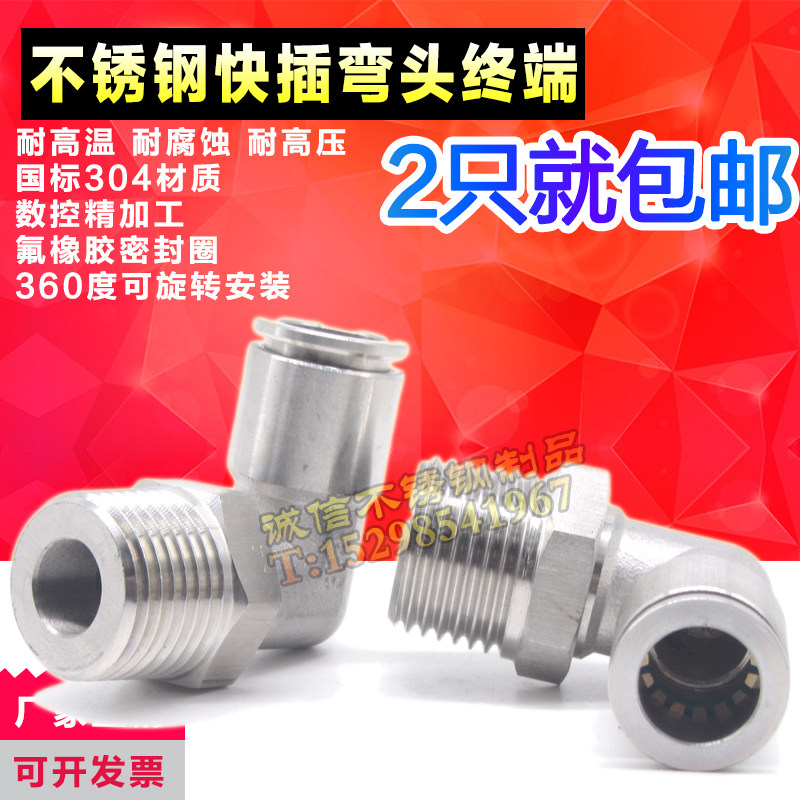 304 stainless steel 360 degree rotating right angle quick plug connector stainless steel insert type trachea quick elbow PL