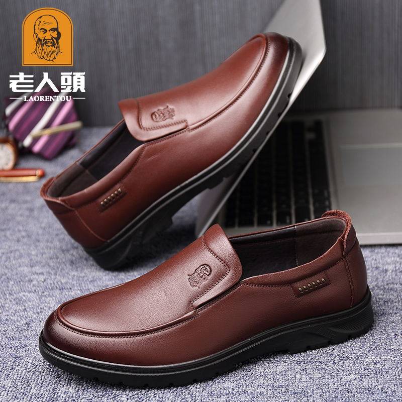 Old man's head men's shoes new men's leather shoes leather breathable business casual shoes cover-round midlife daddy shoes