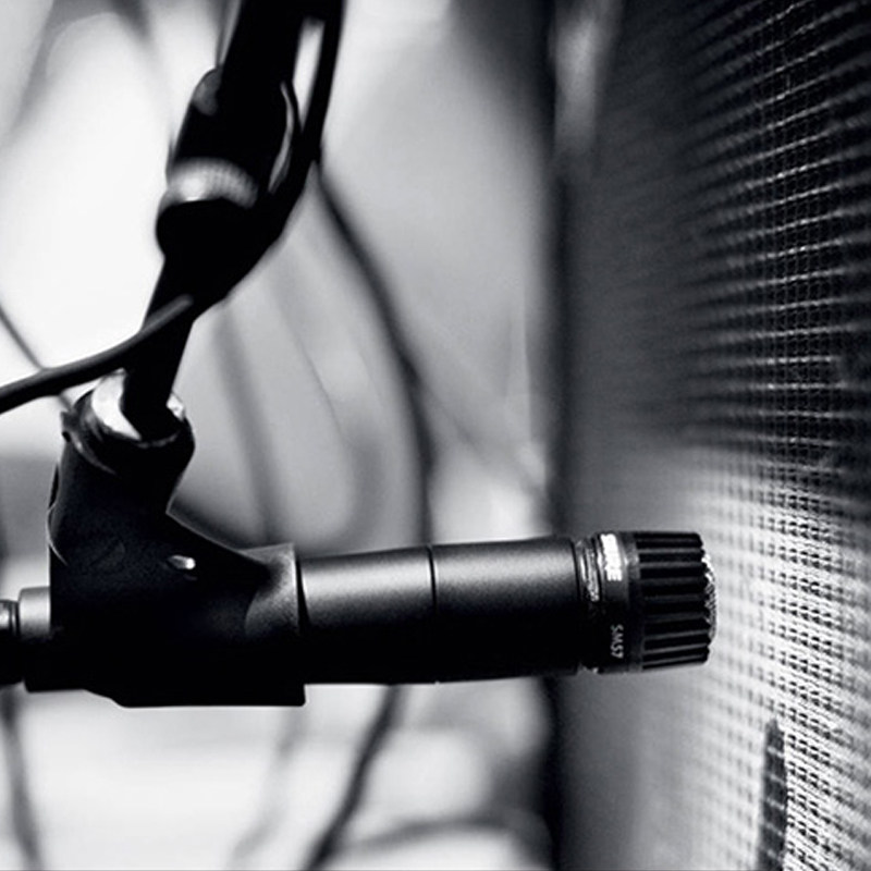 Shure shul SM57 moving coil microphone recording shed stage performance to host musical instrument professional microphone