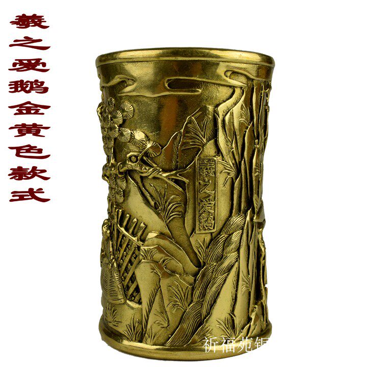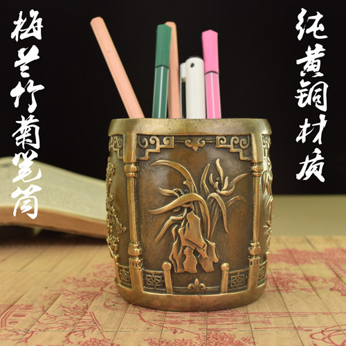 Pure copper pen holder Brass pen holder Small pen holder Plum orchid bamboo chrysanthemum Xi Zhi Love Goose pen holder Handmade antique study copper decoration