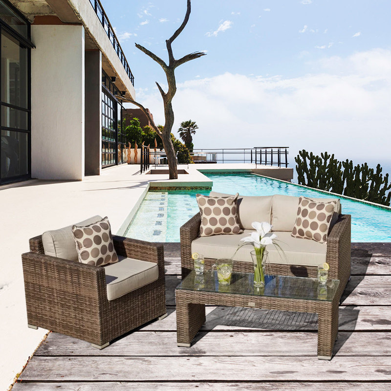 Garden sofa terrace outdoor rattan chair simple modern garden rattan double tea table combination waterproof and sunscreen