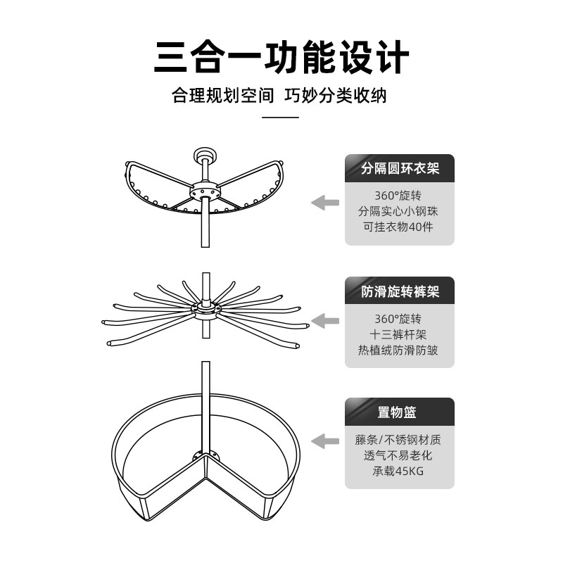 Cloakroom swivel hanger 360 degrees Wardrobe Corner Racks Multifunction Hangers Push-and-pull Pants rack Shoe Rack Containing Basket