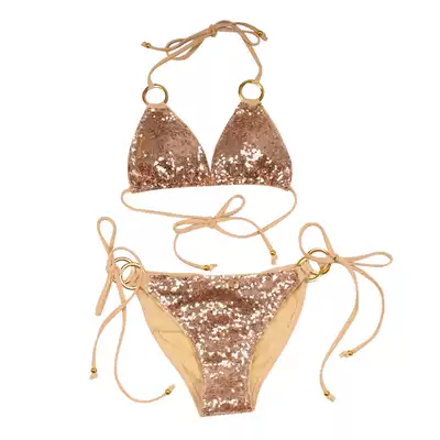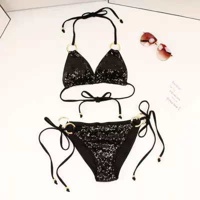 European and American sexy strapping sexy black sequined bikini swimsuit female three-point hot spring swimsuit vacation bikini