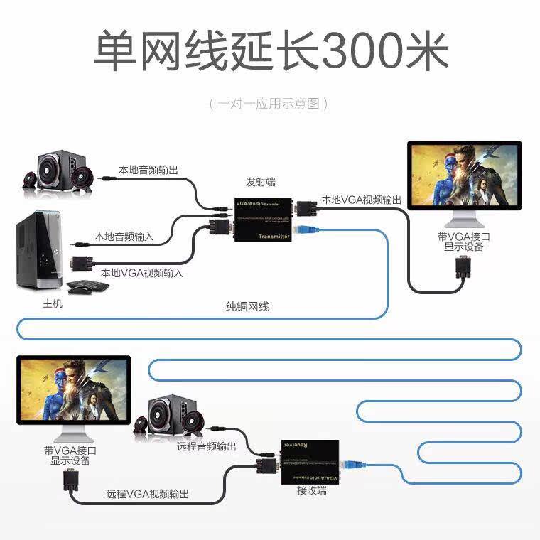 Funger VGA 100 m 100 m 200 m 300 m single network route audio-video amplifier VGA turn RJ45 transmission