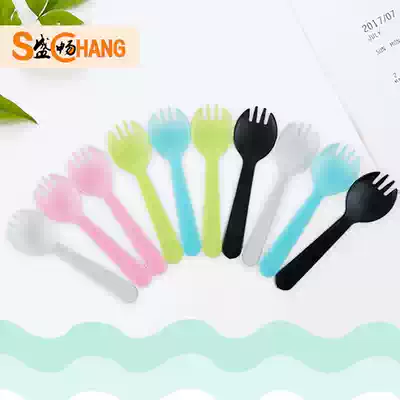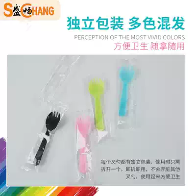 Shengchang disposable plastic spoon 100 individually packaged cake dessert fork thickened color small QHZ60ESI